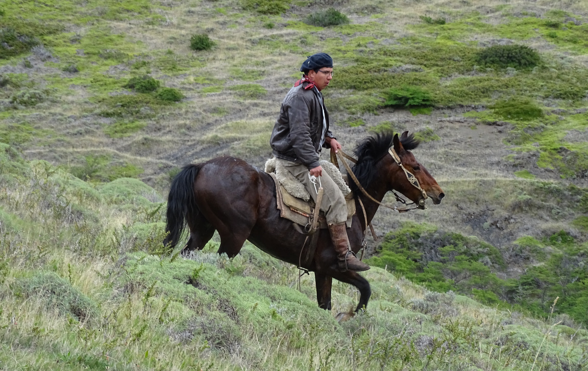 We zien een groep paarden grazen en niet veel later komt een gaucho te paard met een nog grotere groep aan. Al zwaaiend en schreeuwend drijft hij de kudde voorwaarts. We komen bij Lago Nordenskjold, en kijken nu vanaf de andere kant over het meer. Aangezien we morgen een zware dag voor de boeg hebben en ik me niet fit voel, lopen we terug, natuurlijk wel via een andere manier, want we willen wel zo veel mogelijk zien…
