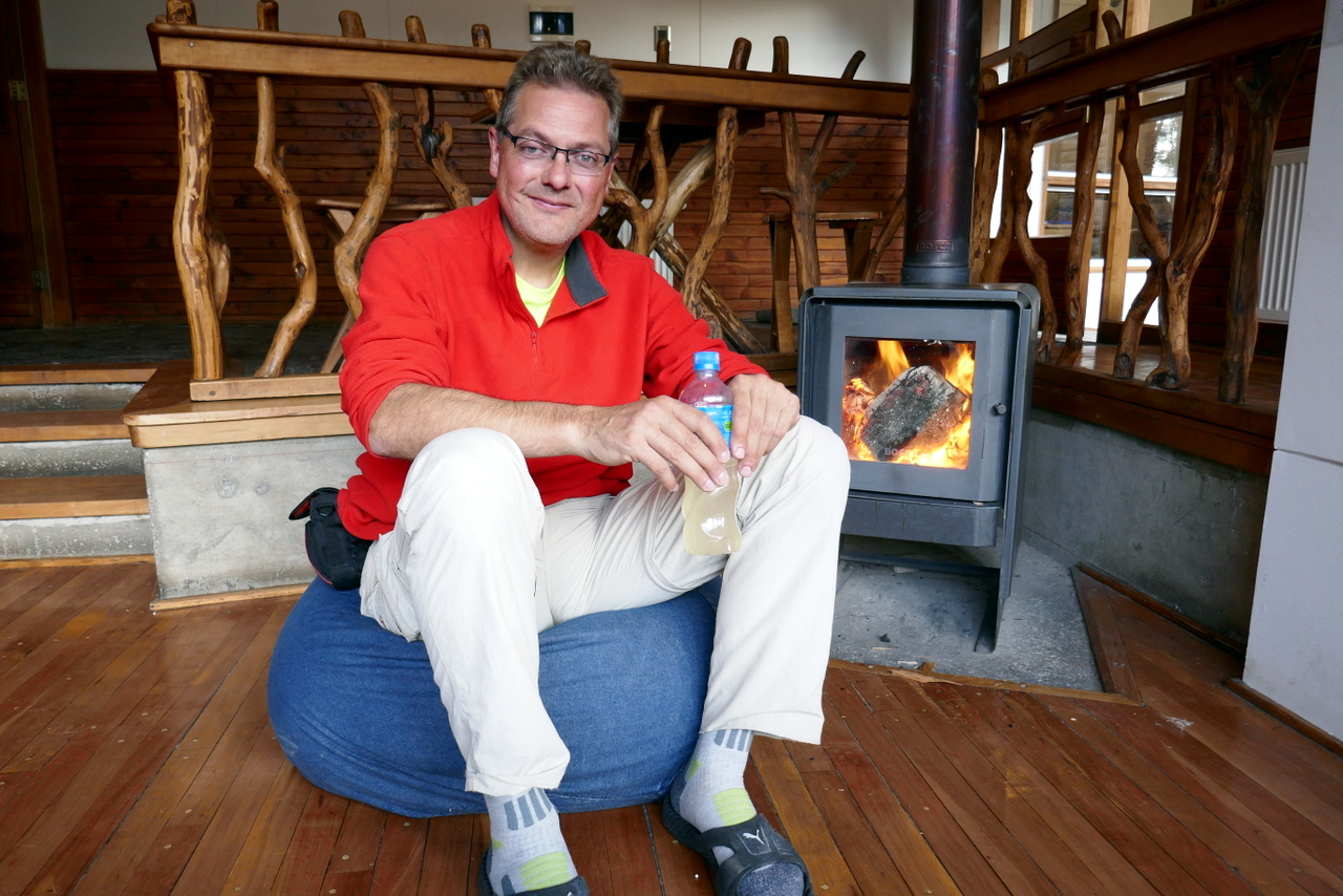 We worden naar Laguna Amarga gebracht, waar we wachten op de pickup naar de refugio Torre Central, ons onderkomen voor de komende drie nachten.