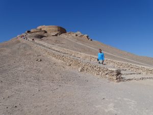 We bezoeken de volgende ochtend een typisch zoroastrisch bezienswaardigheid: de torens van de stilte (Dakhma-Ye Zatoshti). Dit zijn torens waar de Zoroastriërs hun doden, na het wassen inlegden.