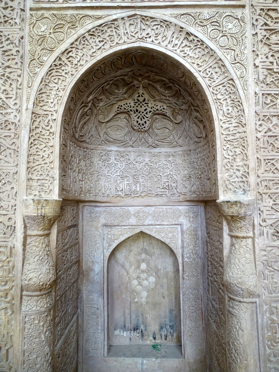 Dit oudere gedeelte stamt uit de 9de eeuw en bestaat alleen uit de eigenlijke oude moskee met een mihrab. Het grote plein is toegevoegd in de tijd van de Safawiden. De oude pilaren zijn nauwelijks versierd en er ligt een dikke laag stof op de grond. Een enkele duif heeft zijn nest in één van de kleine nissen in een pilaar gemaakt. We voelen ons bijna als ontdekkingsreizigers als we hier in een stad van 1.8 miljoen inwoners in ons eentje van mogen genieten.