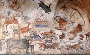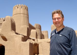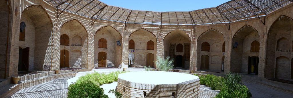 Het is al redelijk laat als we in Kerman aankonen. Kerman ligt zo’n 370 km ten zuidoosten van Yazd. Vanwege zijn relatief afgezonderde ligging, weliswaar op één van de zijderoutes, is Kerman vaak van alle veroveringen bespaard gebleven. We bezoeken de levendige bazaar en mogen van enkele verkopers hun waar proeven. Variërend van een zoete pistache poeder, een heerlijke gedroogde vijg tot een, in de vorm van een krijtje, zeer zurig smakende “kaschk” met een lange nasmaak, gemaakt van gedroogde gefermenteerde geitenmelk. Jakkes! Helaas is het mooie badhuis van het Ganjali Khan complex vandaag gesloten, maar de ingang van het badhuis heeft de fresco’s die we graag willen zien.