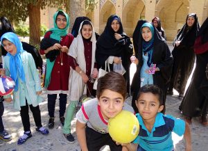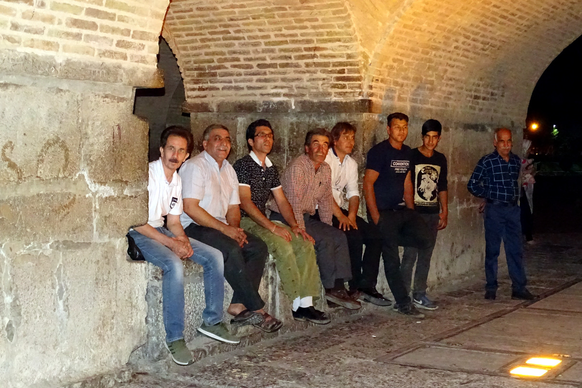 De manier waarop mannen en vrouwen met elkaar en met hun kinderen omgaan ziet er heel normaal uit. Enige wrange puntje was in Isfahan. Daar liepen we ’s avonds langs vier mooie oude verlichte bruggen. De laatste stond er ook om bekend dat er ’s avonds veel verliefde stelletjes zitten en dat er ook gezongen wordt onder de brug. Dat laatste was iets wat nog niet echt toegestaan is.