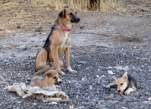 16 Km voor Shiraz maken we nog een korte stop bij een zoutmeer. In deze tijd van het jaar is het meer nagenoeg droog gevallen, je ziet waar er water is nog wel de typisch rode kleur van de algen die in de natte tijd hier voorkomen. Een lekkernij waarop zwermen flamingo’s afkomen. Maar die zien we in deze tijd dus niet. Jammer. Wij bekijken het zoutmeer bij de zoutfabriek waar ik begroet word door een hondenmoeder met twee pups.