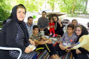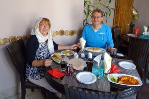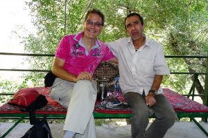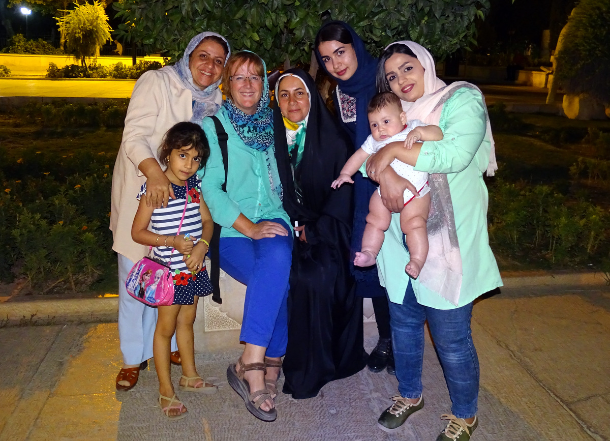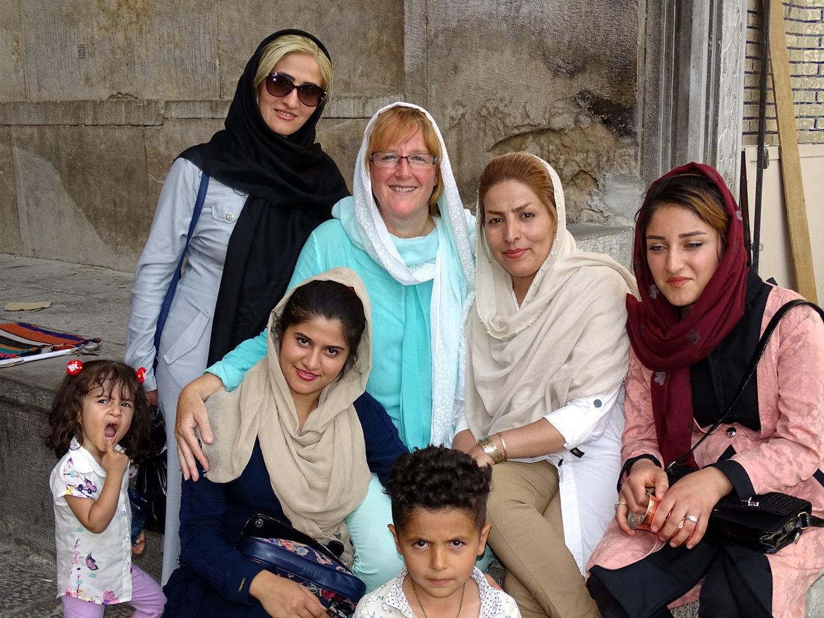 De grote verrassing was toch de al aangekondigde maar niet helemaal voor te stellen ongelooflijke gastvrijheid van de mensen. Al dan niet in wat woordjes Engels of Duits werden we ook met handen en voeten zo hartelijk welkom geheten dat het enorm ontroerde. Voortdurend wilden mensen ook met ons op de foto. Kregen we thee/koffie aangeboden door picknickende Iraniërs, tot zelfs een volle schaal met smakelijk versierde rijst die we helaas af moesten slaan omdat onze bus vertrok. Wat waren die mensen teleurgesteld (zie dat maar eens uit te leggen).