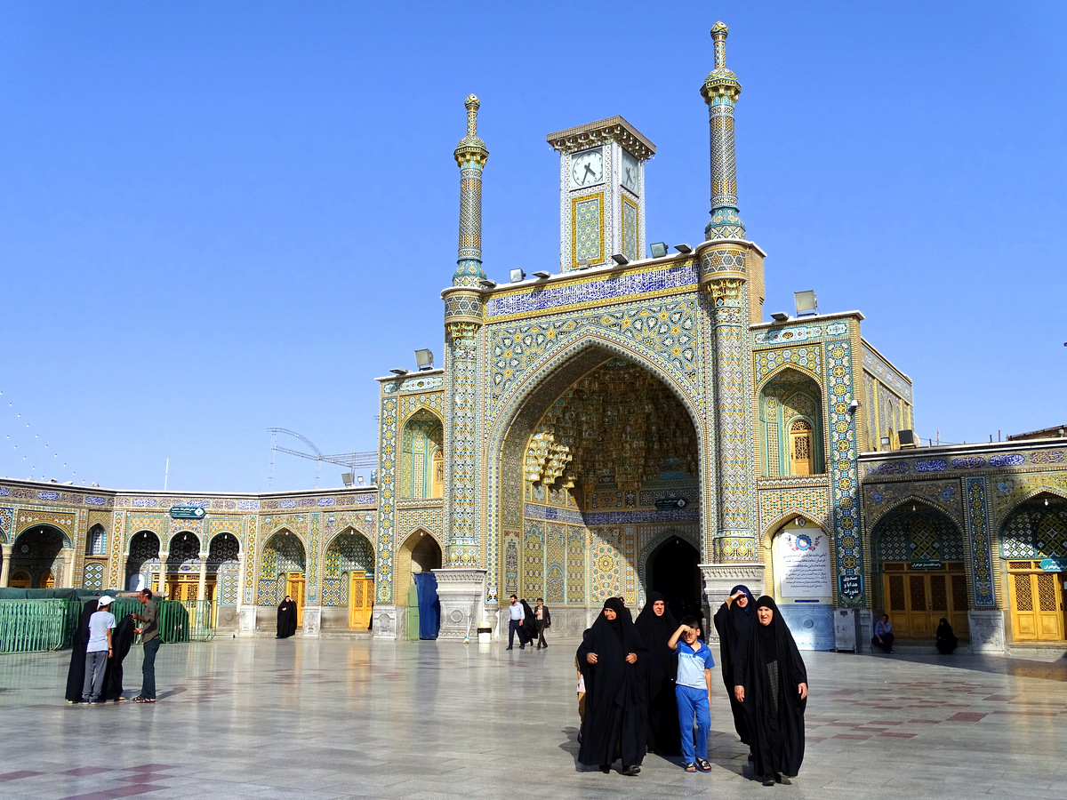 Na een lunchstop als onderbreking van deze lange reis stoppen we rond 16.00 uur in de heilige pelgrimsplaats Qom. Qom is een heilige stad voor sjiitische moslims. Vanaf de 7de eeuw ontpopte Qom zich tot een zeer belangrijk sjiitisch bedevaartsoord. In 816 stierf Fatima, de zus van de achtste Imam Reza, in deze stad op doorreis naar haar broer in Mashad. Zij was een nobele, ongetrouwde vrouw en overleed toen ze 28 was. Zij ligt hier begraven.
