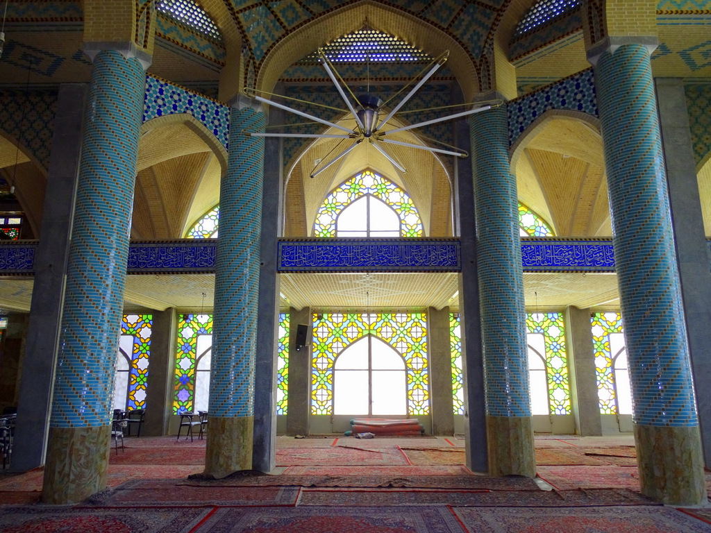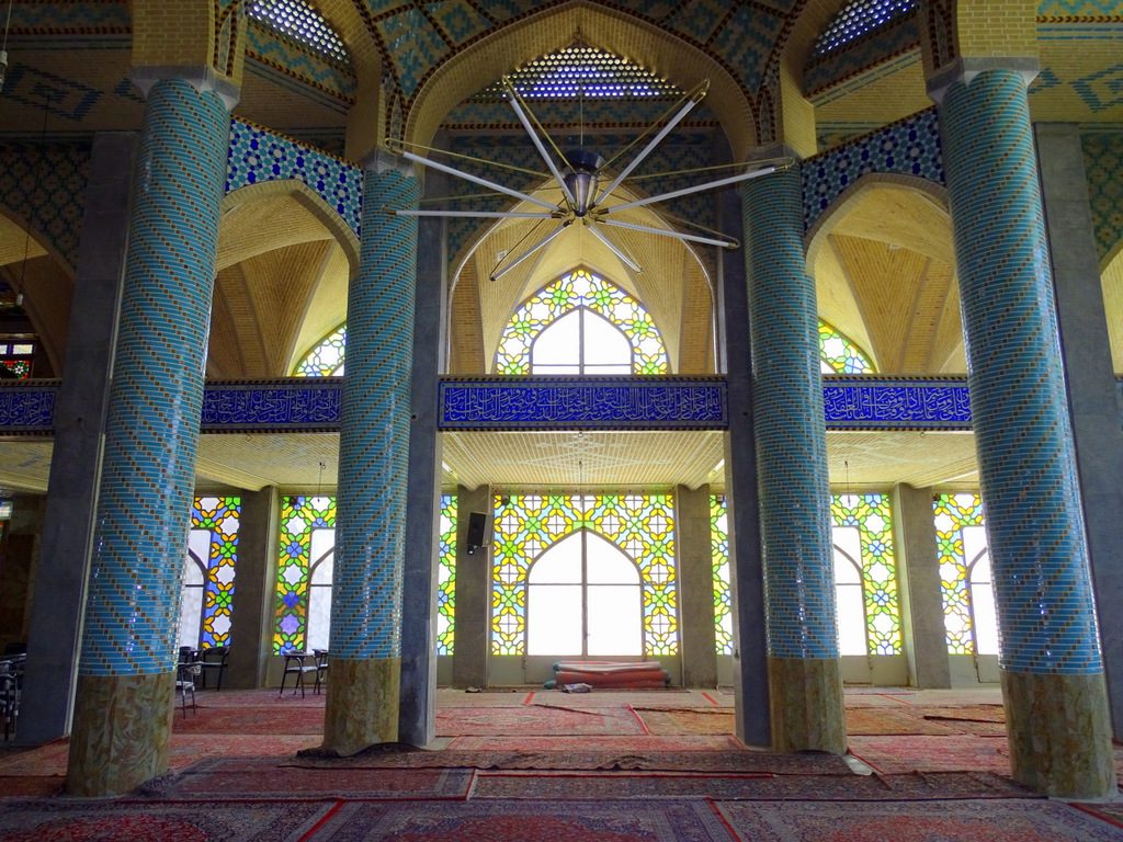 We vervolgen onze weg naar het zuidoosten en gaan omdat we er toch langskomen even kijken bij een “gewone wijk moskee”, de Alreza moskee, die we onderweg zien. De conciërge is blij verrast dat wij buitenlanders zijn moskee komen bezoeken. Hij loopt naar binnen en doet de ventilatoren en het licht aan. Tja, voor de gewone vrouw die zit te bidden gaat ie natuurlijk niet te veel stroom verbruiken… Toch wel leuk om te zien hoe trots ze zijn op hun eigen moskee.