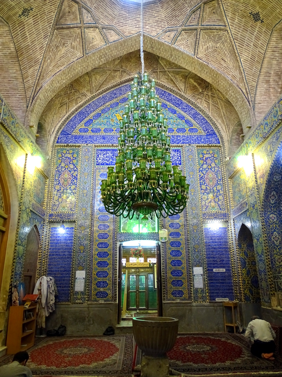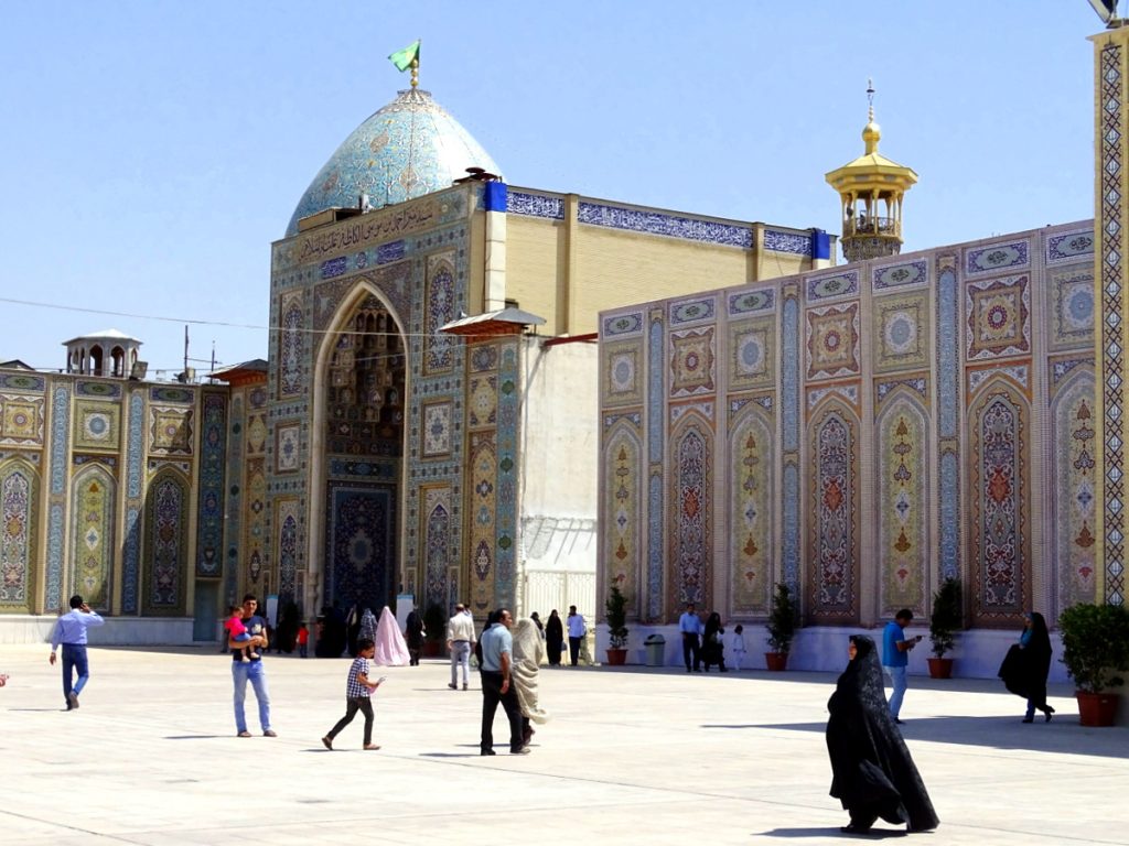 Omdat ik in het Shah-e-Cheragh de heilige ruimte met de schrijn niet in mocht (“het spiegelpaleis”), laten we ons met de bus afzetten in de buurt van Imamzadeh-ye Ali Ebn-e Hamze.