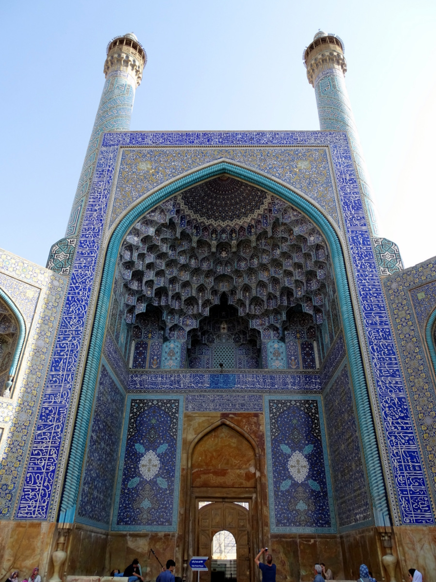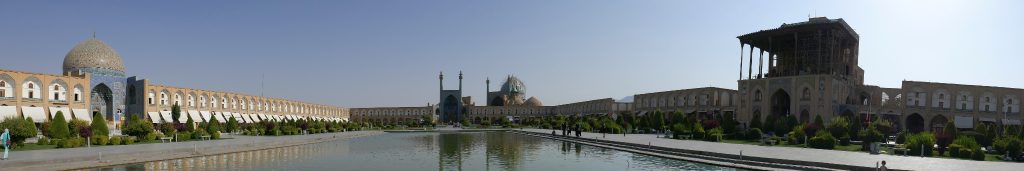 Het Naqsh-e Jahan plein, ook wel bekend als Meidan-e Emam, is na het plein van de hemelse vrede in Beijing het grootste plein ter wereld en vormt het hart van Isfahan. Door de geschiedenis heen is dit plein door verschillende veroveraars gebruikt om mijlpalen te vieren, polo te spelen en militaire parades te organiseren. Wij vonden het in ieder geval veel mooier en sfeervoller dan het militaristische en qua sfeer beklemmende plein in Beijing. Hier spuiten fonteinen in mooie, groene met bloemen versierde tuinen, er staan bankjes en rijtuigjes rijden (Iraanse) toeristen er rond om heen. Het plein wordt omgeven  door een aantal belangrijke mooie monumenten zoals de Qaisarieh bazaar, de Sheikh Lotfollah moskee, de Mashed-e Emam moskee en het Ali Qapu paleis. Het rechthoekige plein is omgeven met een grote muur waarin winkeltjes zitten.