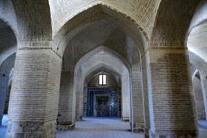 Onderweg pauzeren we in Neyriz, voor een bezoek aan de oude Jameh moskee. Deze dateert uit de 9e eeuw en is een voormalige vuurtempel wiens functie werd veranderd tot moskee tijdens de eerste jaren van het islamitische tijdperk. Het heeft een mooie metselwerk minaret en een zeer rijk bewerkte mihrab.