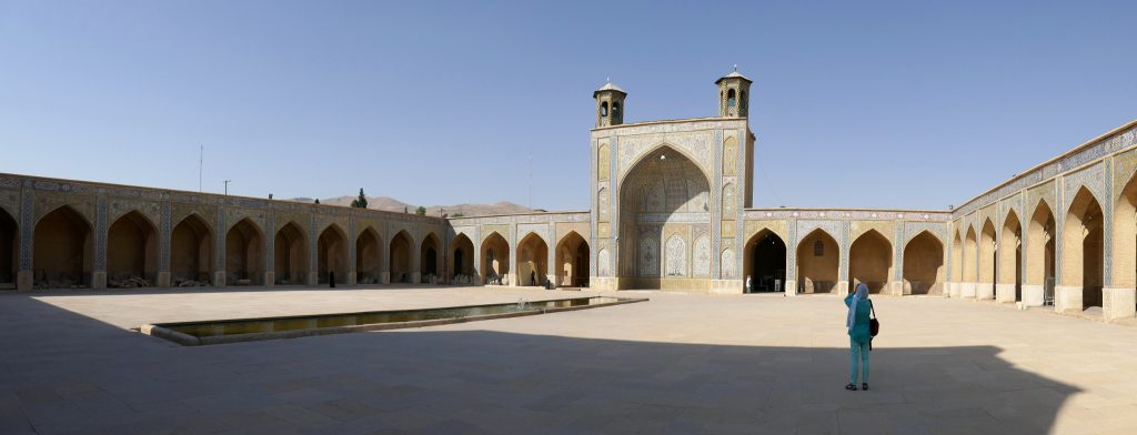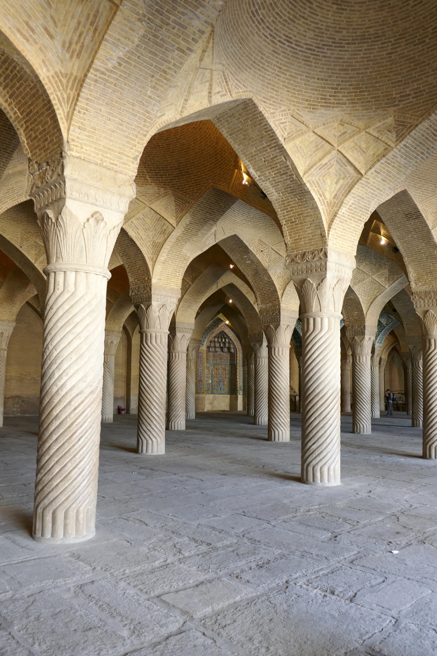 De Vakil moskee gebouwd van 1751 tot 1773 is eigenlijk meer bijzonder vanwege zijn afwijkende bouwstijl. Hij heeft maar 2 iwans (ingangen) in plaats van de gebruikelijke 4. De 48 zuilen van de 2700 m2 gebedshal zijn niet gedecoreerd maar in een spiraal gedraaid. Elke zuil heeft een capiteel van Acanthus bladeren. Daarnaast staat er nog een uit veertien trappen bestaande minbar gemaakt van een monoliet uit Azerbeidzjan.