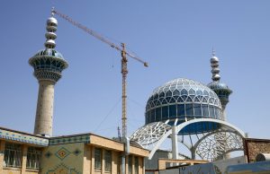 Even verderop zien we een paar gigantisch grote en moderne minaretten. We besluiten om ernaar toe te lopen. Het is een gigantisch complex dat nog in aanbouw is. Van enkele domes en minaretten staat alleen het skelet. Bij navraag blijkt het om de Mosalla moskee te gaan. Sinds 2005 wordt er al aan gewerkt, het complex zal in totaal 8 minaretten krijgen en de domes zijn de grootste ooit in Iran gebouwd. Zelfs het indrukwekkende Shah-e-Cheragh valt in het niets bij de grootte van dit project. Ik ben benieuwd hoe het eruit zal zien als het af is…