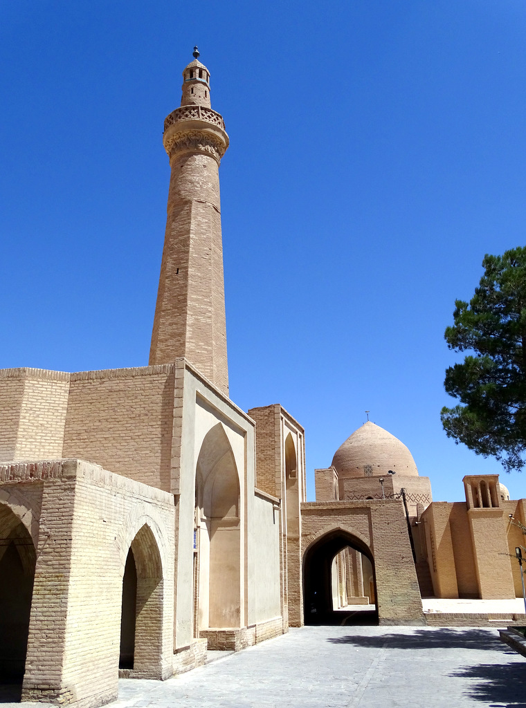 De Jameh Moskee (= Groot Moskee) van de stad Na’in dateert van ongeveer de 9e eeuw en is één van de oudste moskeeën van Iran. Het is één van de eerste vier moskeeën die gebouwd werden na de invallen van de Arabieren. Het oudste (vuurtempel) deel dateert uit de 8ste eeuw, later werd de moskee over de vuurtempel heen gebouwd. Heel bijzonder vind ik de bakstenen wanden en pilaren rond de binnenplaats, de veertien zuilen zijn elk versierd met een uniek patroon van metselwerk, Seltsjoeks vakmanschap uit de 11e eeuw.