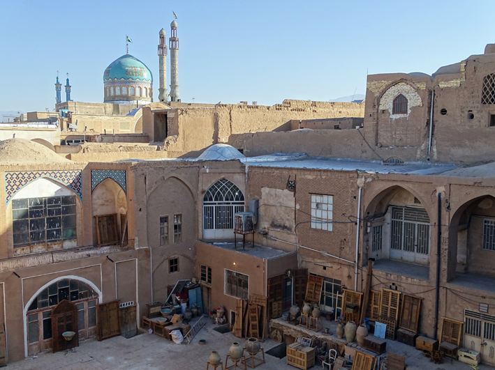Tussen Kashan en Yazd maken we een stop in Na’in met zijn middeleeuwse oude centrum. Na’in was vroeger een belangrijke halte op de oude karavaanroute ten zuiden van de woestijn en is een echt authentiek woestijnstadje met veel leembouw, een oude moskee (vroeger vuurtempel geweest) met diepe cisternen en een compleet onderaards labyrint waar de bewoners zich tegen overvallers en woestijnrovers konden beschermen, waarschijnlijk nog stammend uit de pre-islamitische tijd!