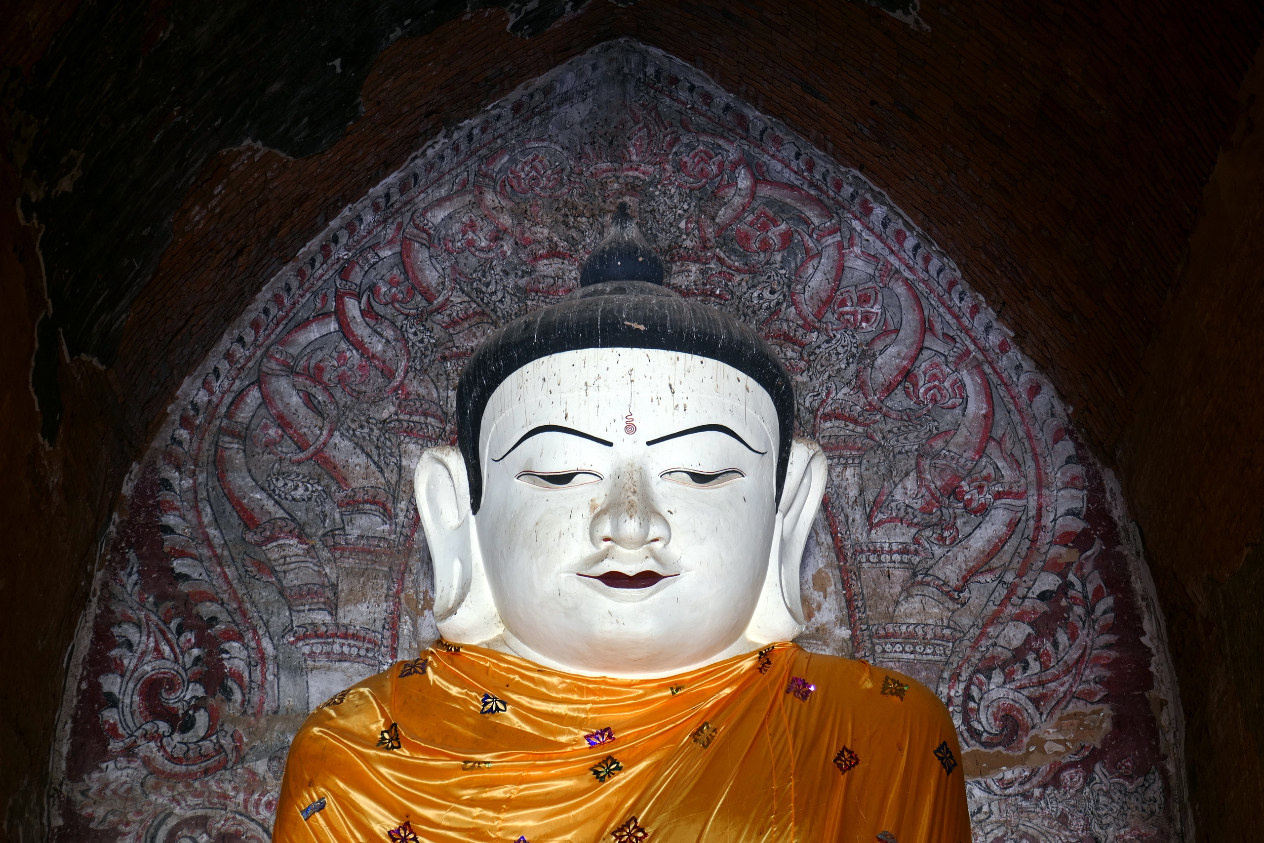 Grote Boeddha met muurschildering in de Dhammayangyi tempel