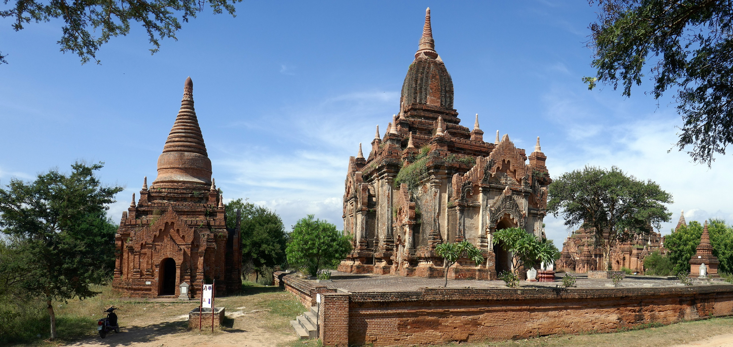 Met onze e-bike (elektrische brommer) gaan we op weg. Overal zie je kleinere en grotere stoepa’s en tempels, soms alleen, soms in groepjes.
