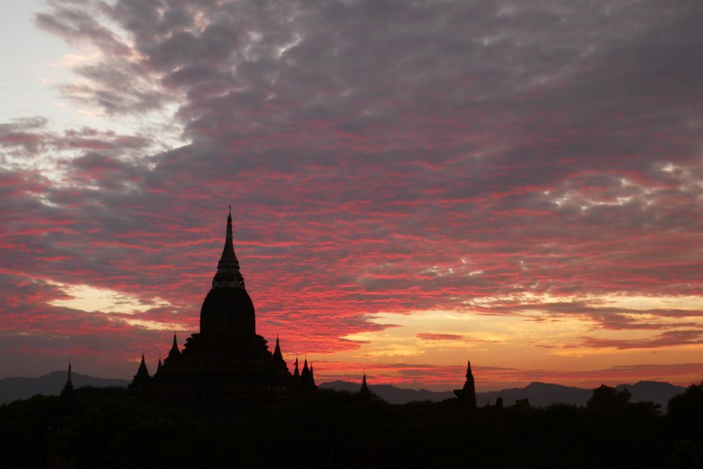 Tja, wat moet ik vertellen over Bagan. Voor de historici onder ons: Bagan was de Birmese hoofdstad van de 10de tot en met de 13de eeuw, de glorie tijd van het Birmese Rijk. Er stonden toen zo’n 13.000 stoepa’s en tempels op een gebied van 40 vierkante kilometer. Onder de dreiging van de Mongolen werden 6.000 tempels afgebroken om de muren te versterken, echter dat mocht niet baten. Tegenwoordig vind je nog zo’n 2.500 tempels en stoepa’s in verschillende maten van verval.