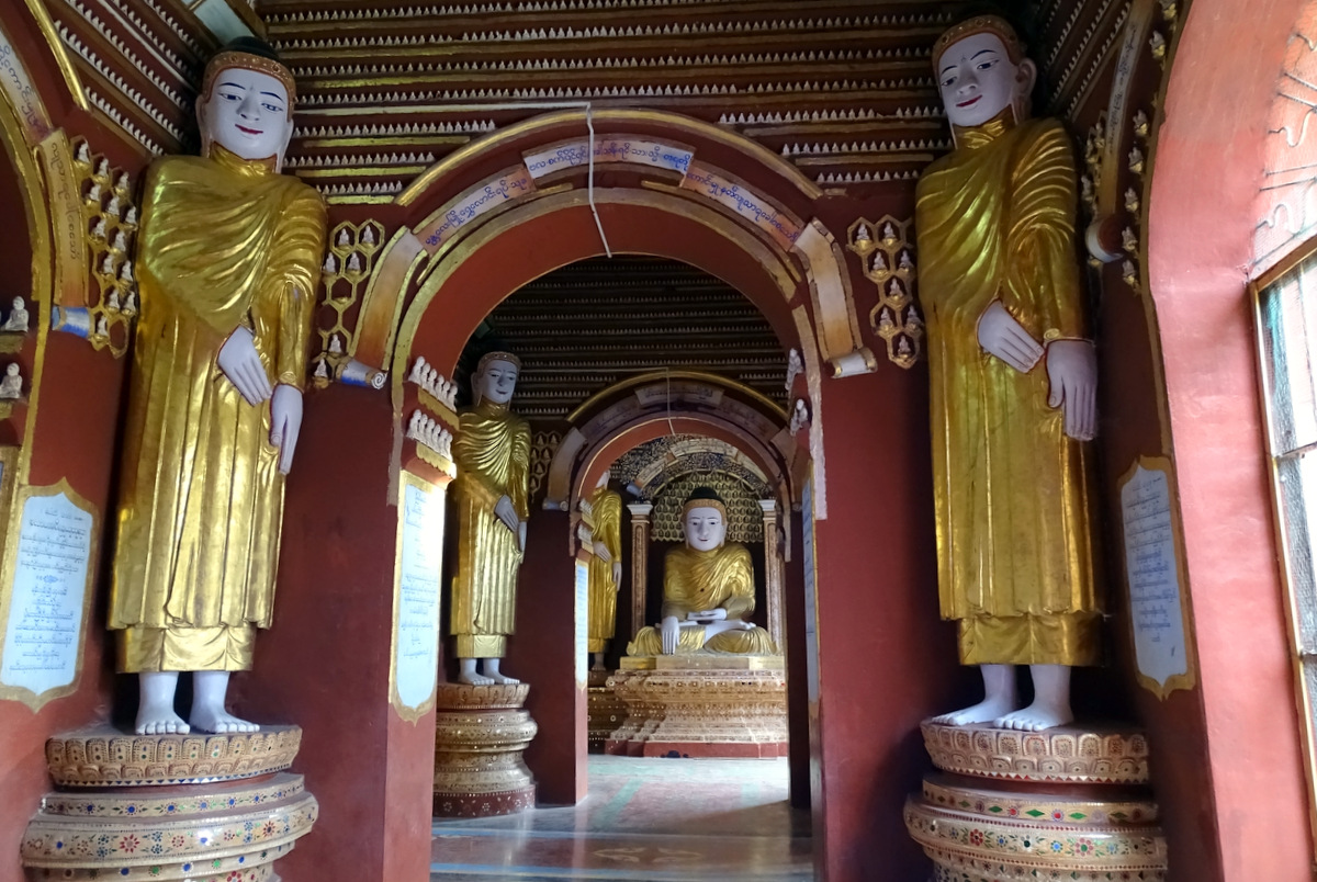 De U Min Thonze tempel heeft een prachtige galerie met 45 Boeddha beelden. De grote Kaunghmudaw pagoda valt op door zijn bolle vorm. De oorspronkelijke kleur was wit maar tegenwoordig is hij, in opdracht van de militaire regering, in goudkleur. Onder druk van de bevolking zal hij echter volgend jaar weer zijn witte kleur terug krijgen.