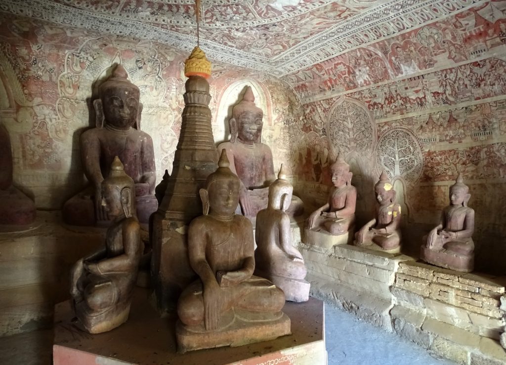 Er zijn ongeveer 900 zandstenen grotten met talrijke Boeddha beelden en erg goed bewaard gebleven muurschilderingen in levendige kleuren die het Birmese leven laten zien. Maar natuurlijk ook de Jataka verhalen, ofwel 547 afbeeldingen waarin het leven van Boeddha wordt afgebeeld.