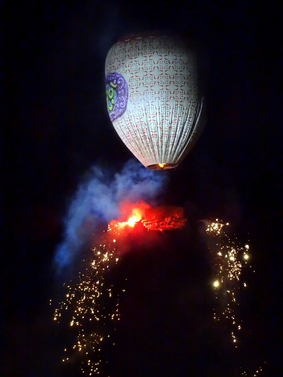 Je kunt de verdiepingen alleen via de trap bereiken. De onderste verdiepingen beelden de onderwereld uit, de hel! Dat is duidelijk zichtbaar aan de muurschilderingen van brandende mensen… Maar hoe hoger we komen, hoe luchtiger en opgewekter de muurschilderingen worden, tenslotte kom je in het nirwana… Zover zijn we echter niet gekomen. Na de 26e verdieping hielden we het voor gezien toen bleek dat nog niet alle schilderingen af waren.