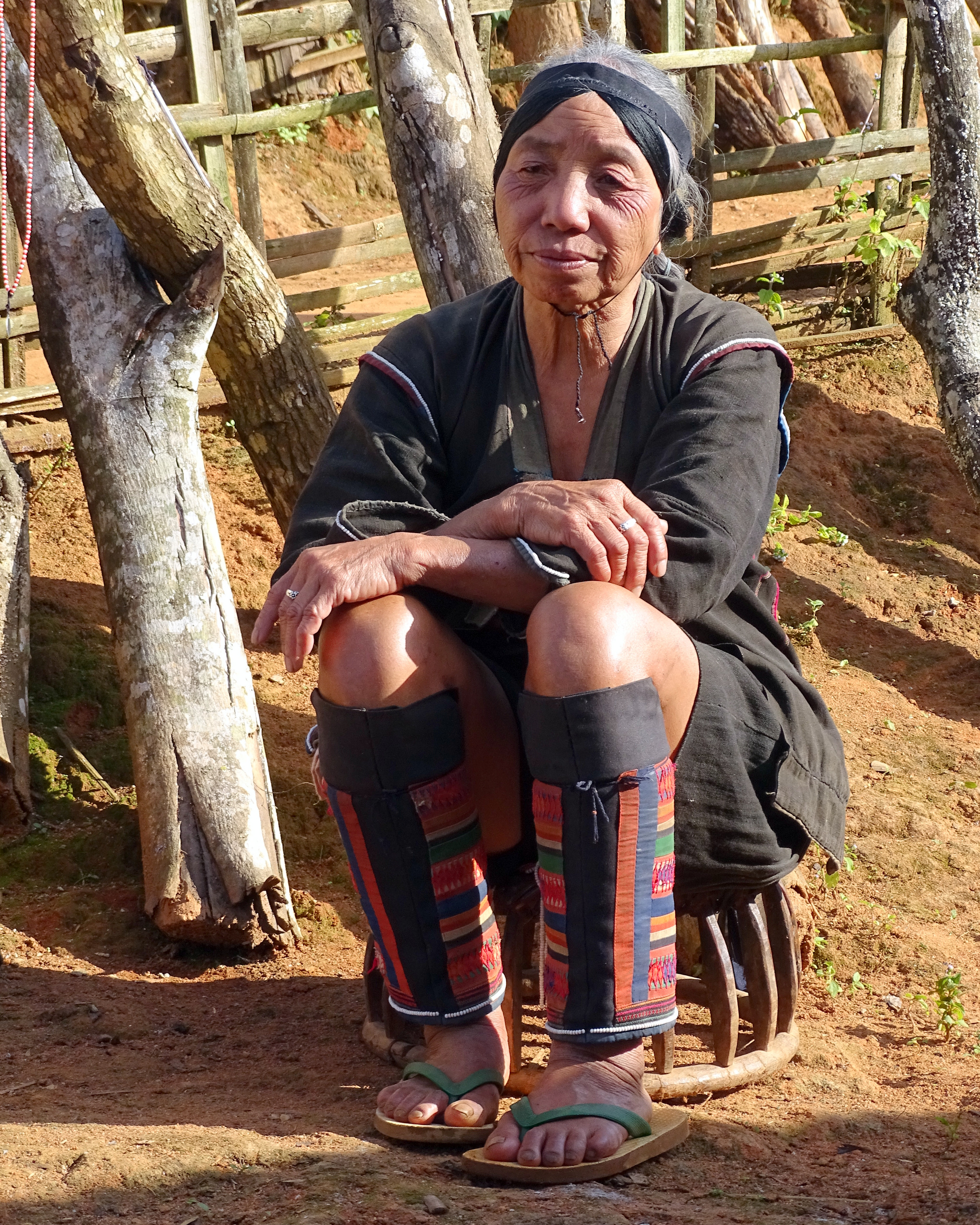 Hier geen met souvenirs zeulende vrouwen en meisjes. Gewoon dagelijks leven. Meisjes die manden op hun rug droegen om sprokkelhout te gaan halen, mannen die hun planten water geven en vrouwen die bezig waren met het verstellen van kleding en het borduren van stoffen.