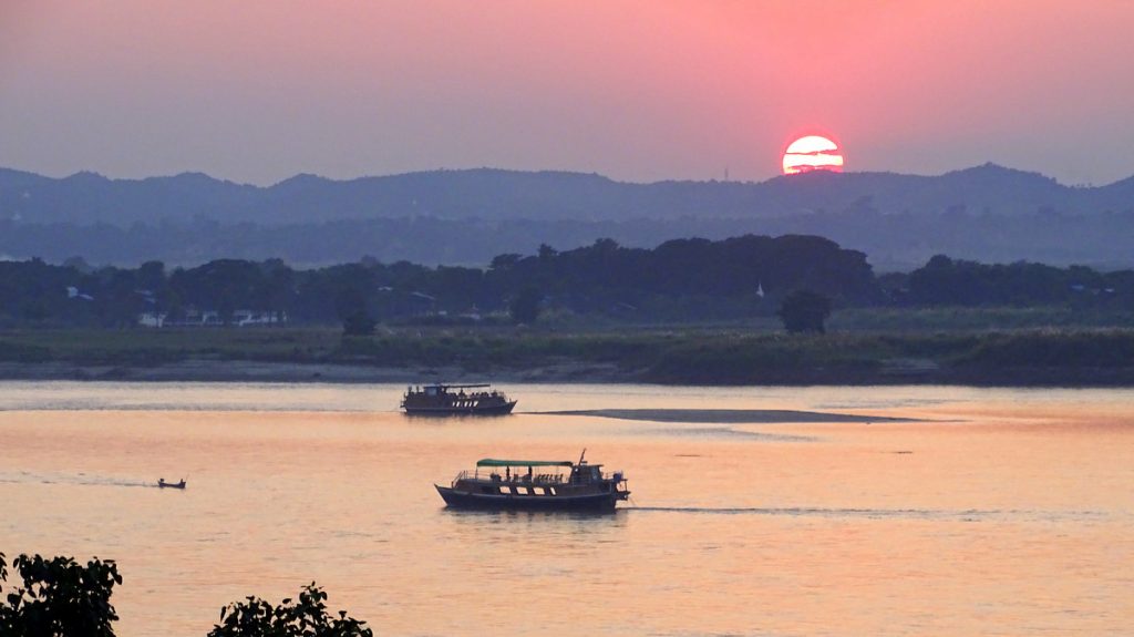 Zonsondergang over de Ayarwaddy rivier
