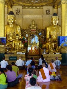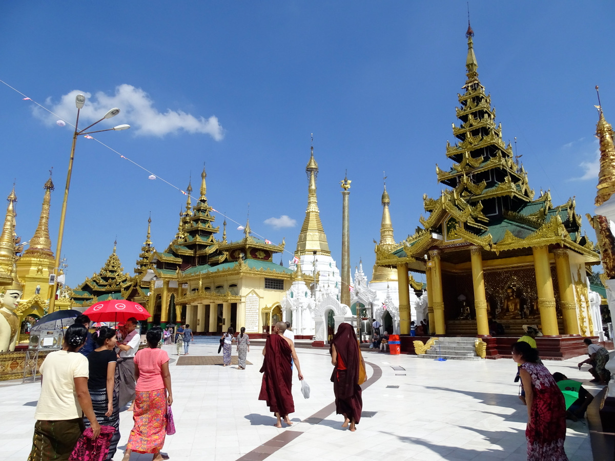 Het is er redelijk druk, maar je ziet voornamelijk Burmezen en een handjevol toeristen. Echt overlopen is het (gelukkig) niet, zoals het helaas inmiddels in veel andere landen in de wereld wel het geval is. Er zijn vele souvenir shops en winkels voor het kopen van offergaven bij deze belangrijke tempel, echter de verkopers klampen je niet aan…