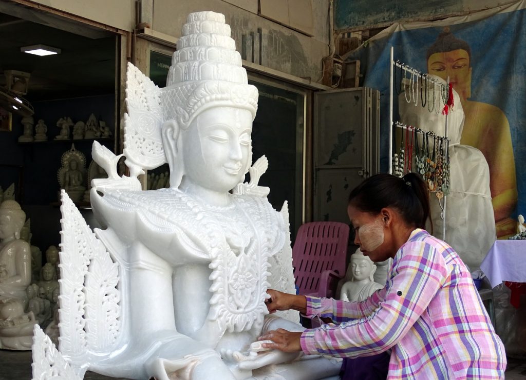 Vrouwen beeldhouwen ook maar zijn ook vooral goed in het monnikenwerk: het polijsten.
