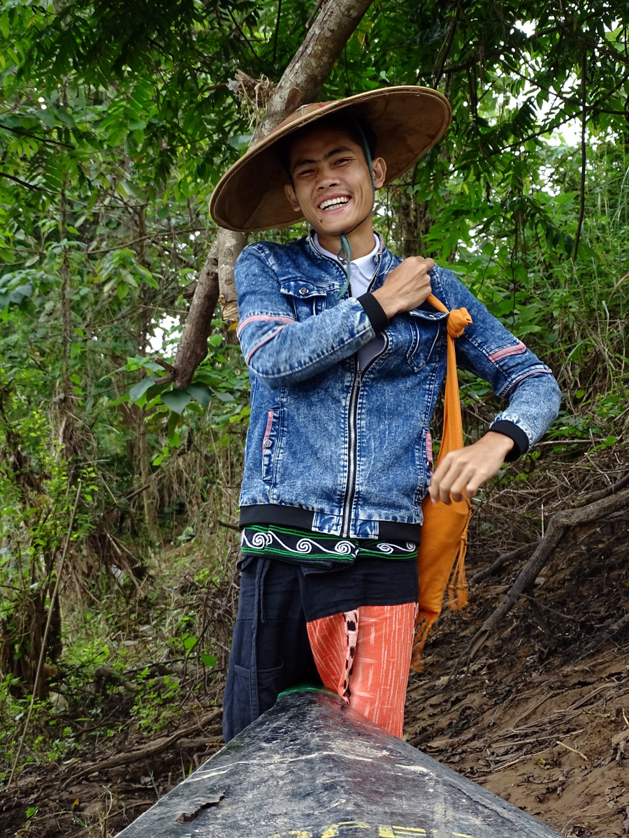 Terug bij de boot werden we nog even geknuffeld door de tandeloze lieve 72 jaar oude dame die nog steeds zelfstandig in haar schamele huisje bij de rivier woont en haar eigen gewassen verbouwt. Eten kan ze ze niet. Ze leeft op rijstsoep en groentensoep. Waarschijnlijk is ze nog ouder, ze weet het zelf niet meer zo goed.